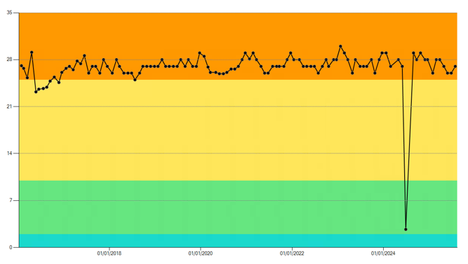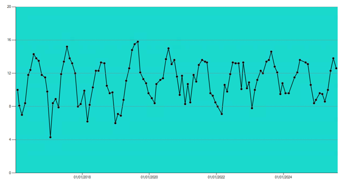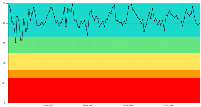 Paramètre mesuré : Oxygène dissous (en mg/L)